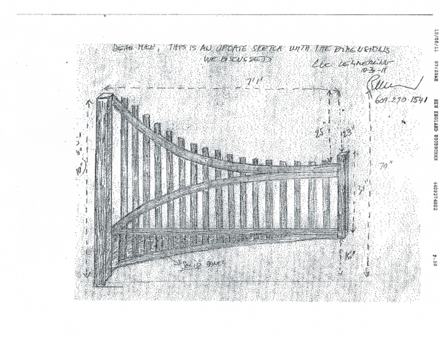 Custom wooden driveway gate designed (and stained) by customer for uphill driveway clearance.
